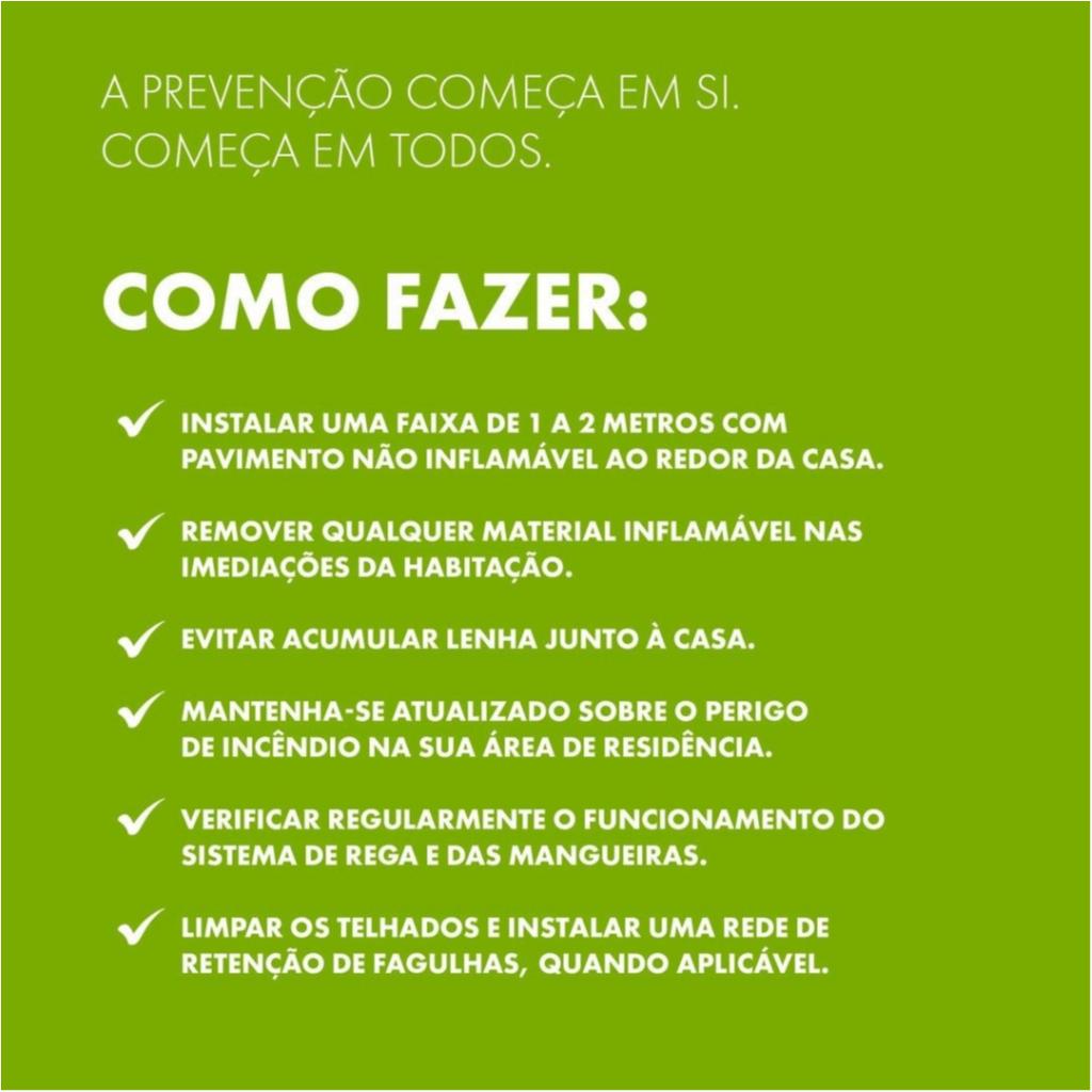 Adote comportamentos preventivos e reduza o risco de incêndio rural. Pequenas ações fazem uma grande diferença.
